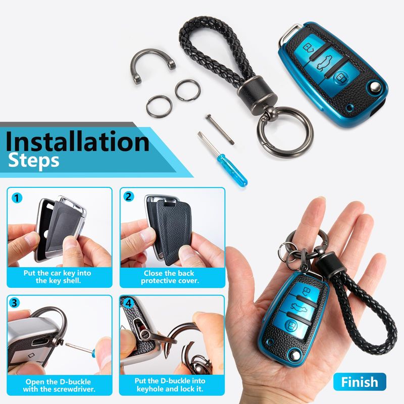RODADOSHERRAMIENTAS PARA AUTOFunda para llavero Audi con llavero de cuerda trenzada de metal, carcasa de grano de superficie de