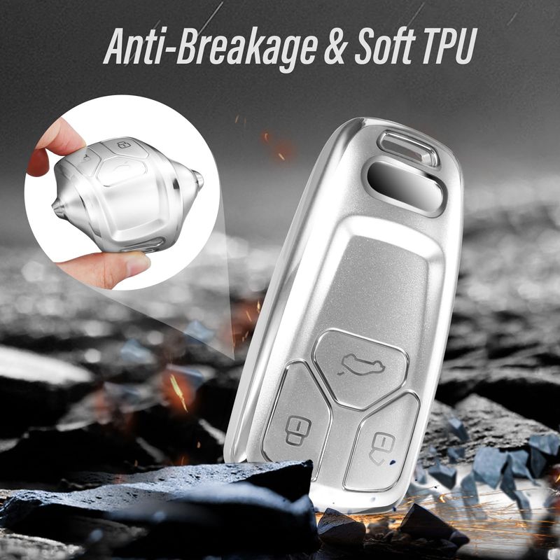 RODADOSHERRAMIENTAS PARA AUTOFunda para llavero de Audi con llavero de nailon, funda suave metálica mate de moda para Audi A4 A5