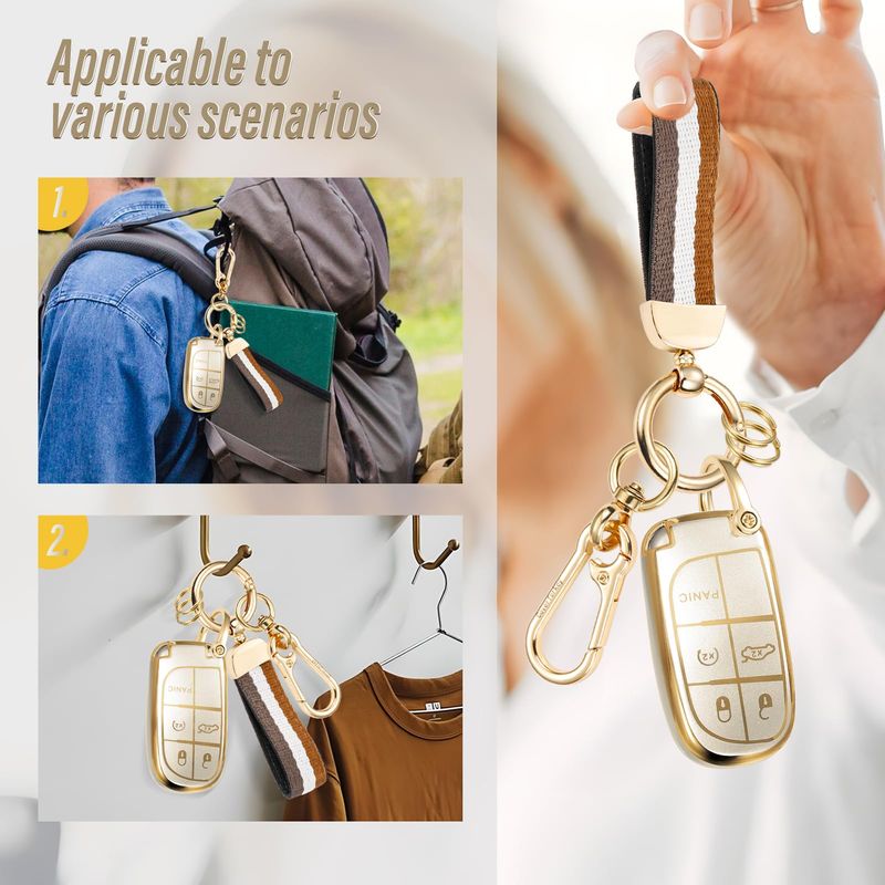 RODADOSHERRAMIENTAS PARA AUTOFunda para llavero de Jeep con llavero de nailon con correa de nailon, funda suave metálica mate a