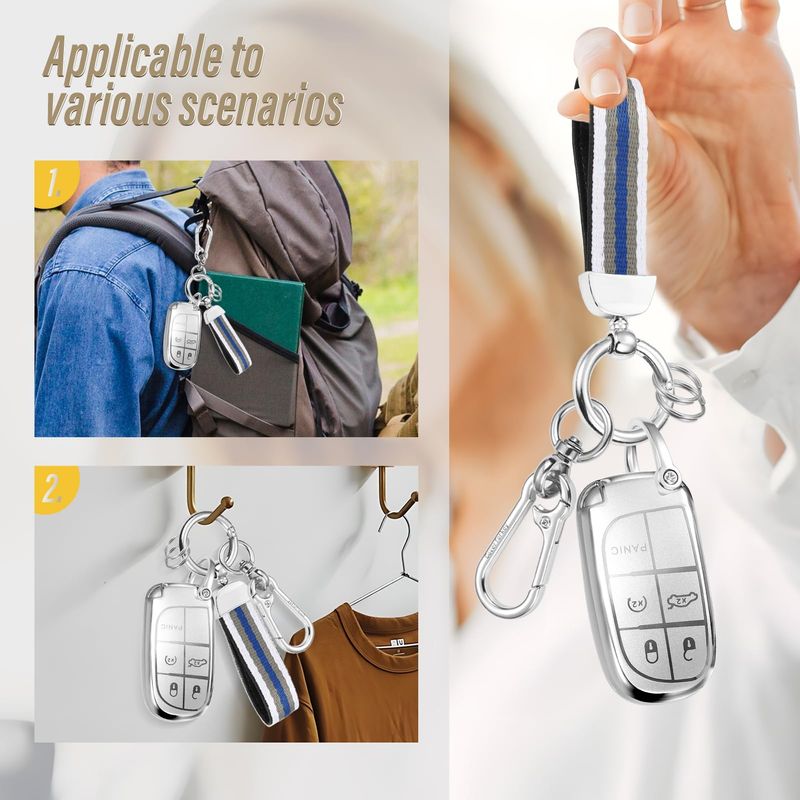 RODADOSHERRAMIENTAS PARA AUTOFunda para llavero de Jeep con llavero de nailon con correa de nailon, funda suave metálica mate de