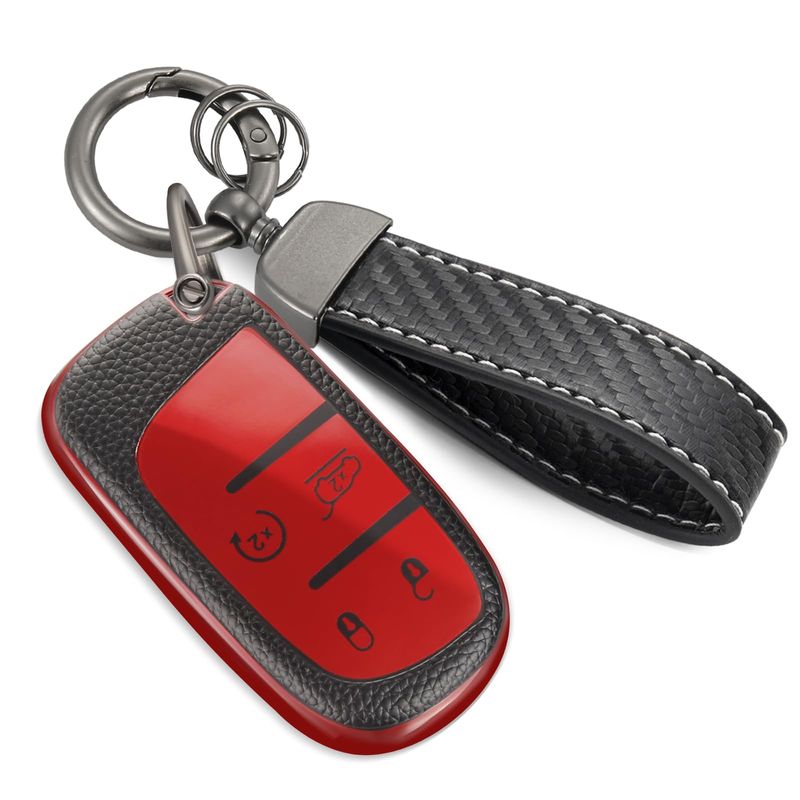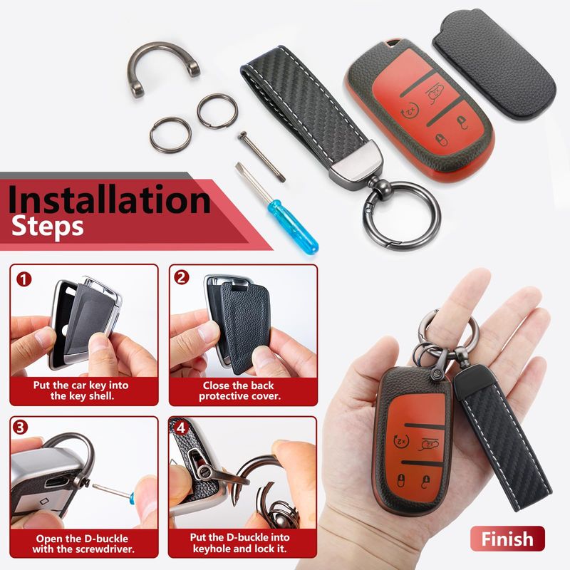 RODADOSHERRAMIENTAS PARA AUTOFunda para llavero Jeep con llavero de cinturón estilo fibra de carbono, funda de grano de