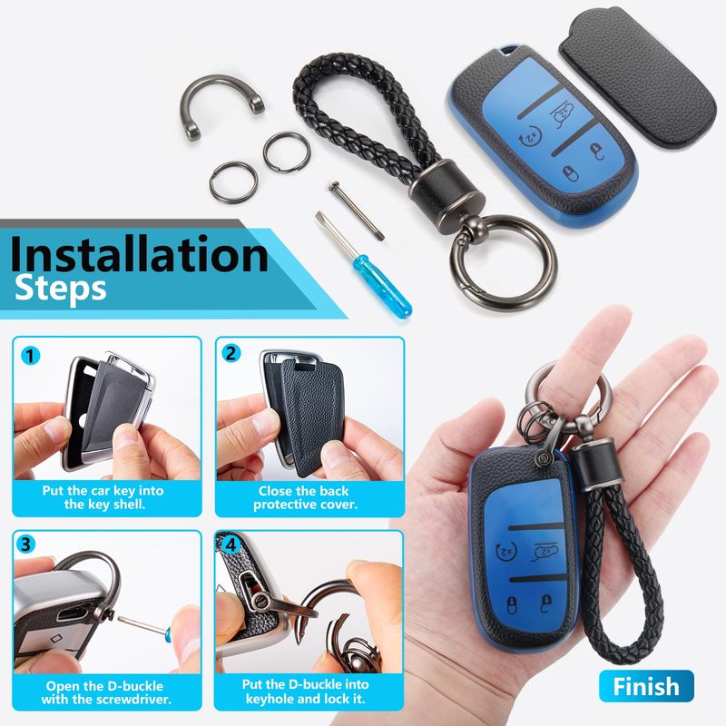 RODADOSHERRAMIENTAS PARA AUTOFunda para llavero Jeep con llavero de cuerda trenzada de metal, funda de grano de superficie de TPU