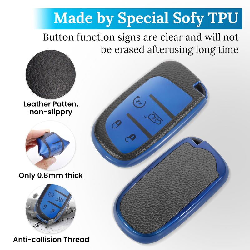 Funda para llavero Jeep con llavero de cuerda trenzada de metal, funda de grano de superficie de TPU