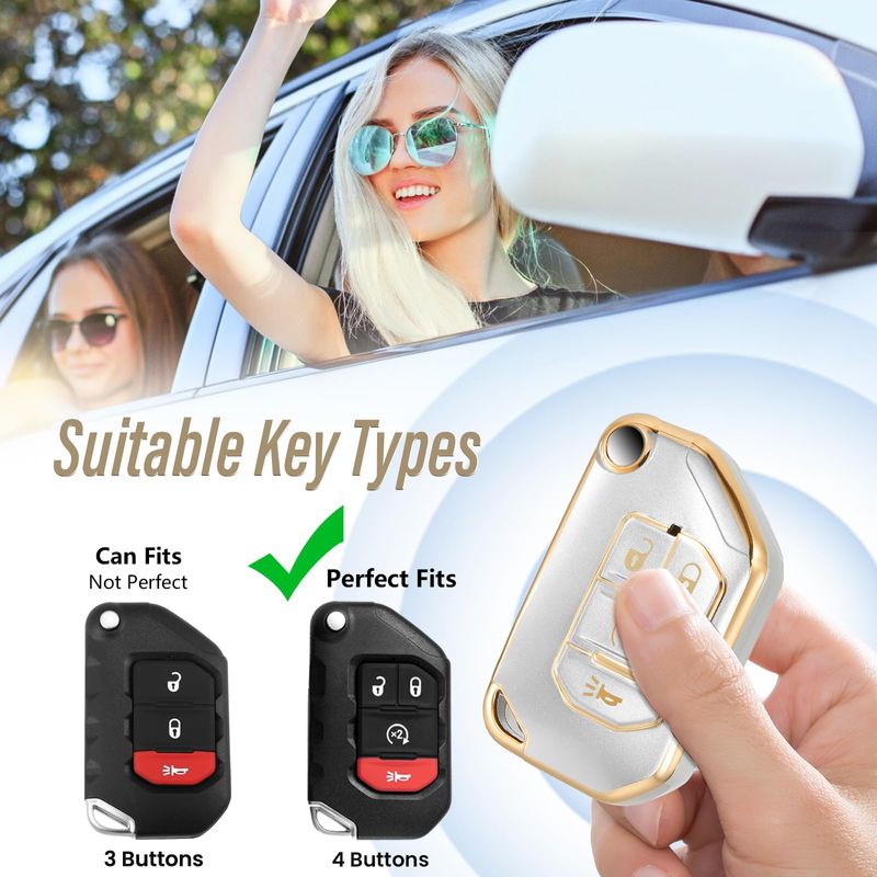 Funda para llavero Jeep con llavero de nailon para Jeep Wrangler, funda suave metálica mate a la