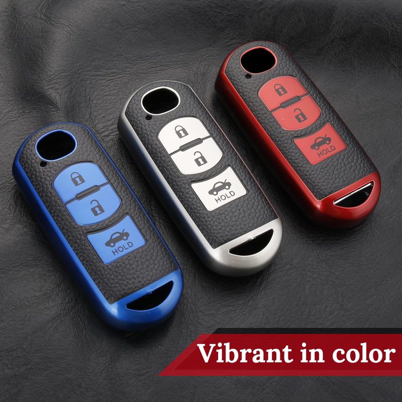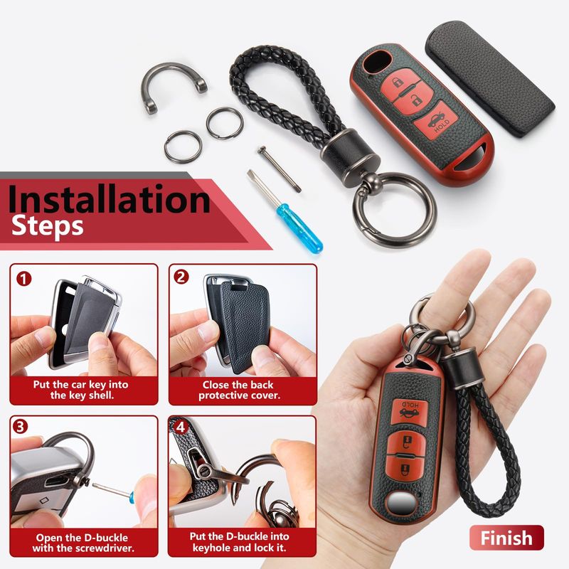 Funda para llavero Mazda con cuerda trenzada de metal, funda de grano de superficie de TPU mejorada