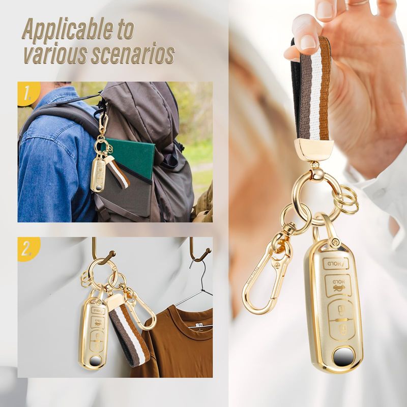 RODADOSHERRAMIENTAS PARA AUTOFunda para llavero MZD con correa de nailon, funda suave metálica mate de moda para CX-3 CX-5 CX-7