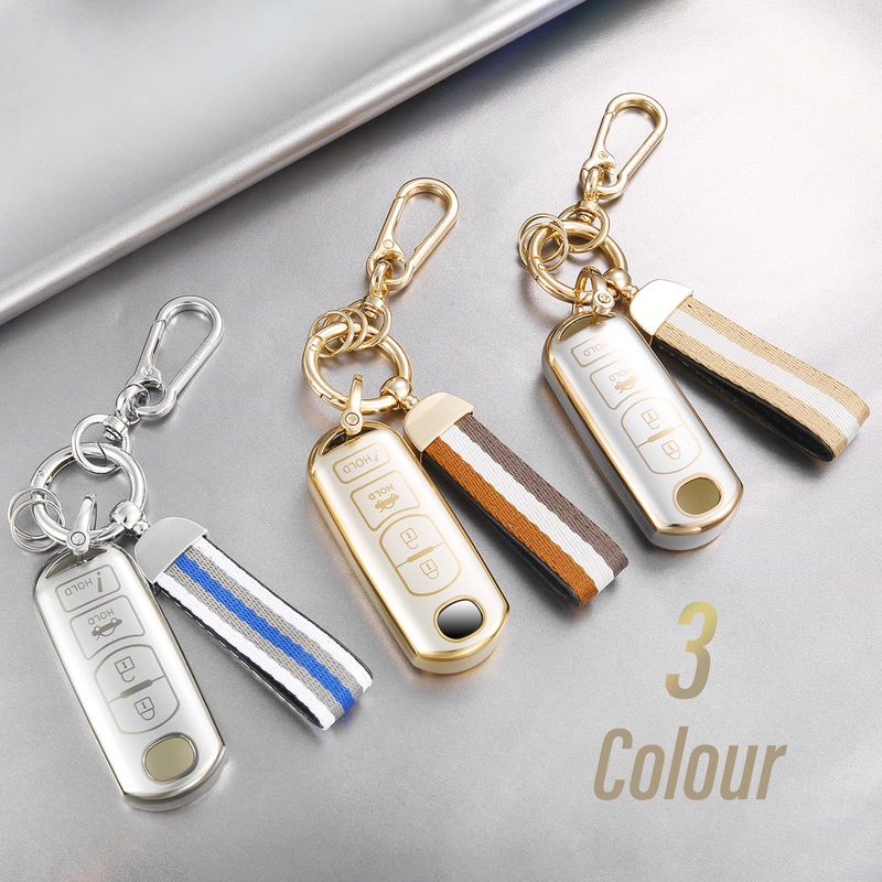 Funda para llavero MZD con correa de nailon, funda suave metálica mate de moda para CX-3 CX-5 CX-7