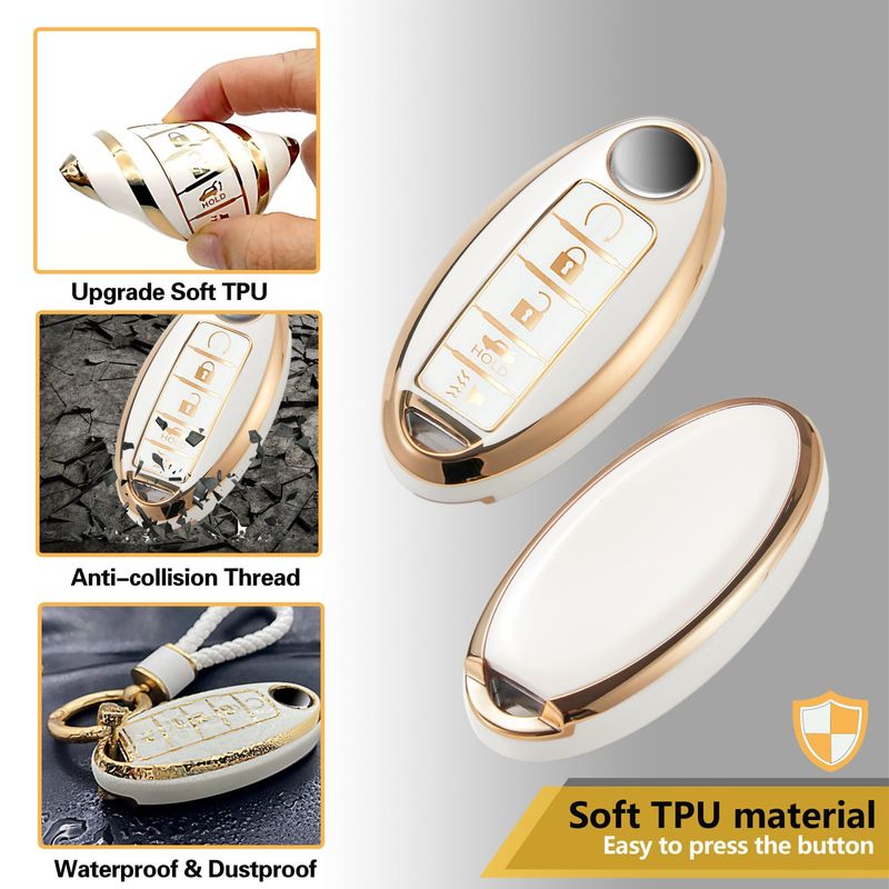 Funda para llavero Nissan con llavero de cuerda trenzada de metal de lujo, funda suave mejorada para
