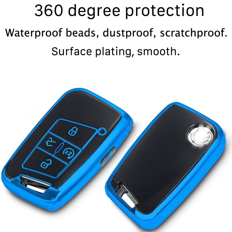 Funda para llavero Volkswagen con llavero de metal/cuero, TPU 5 botones, compatible con llave