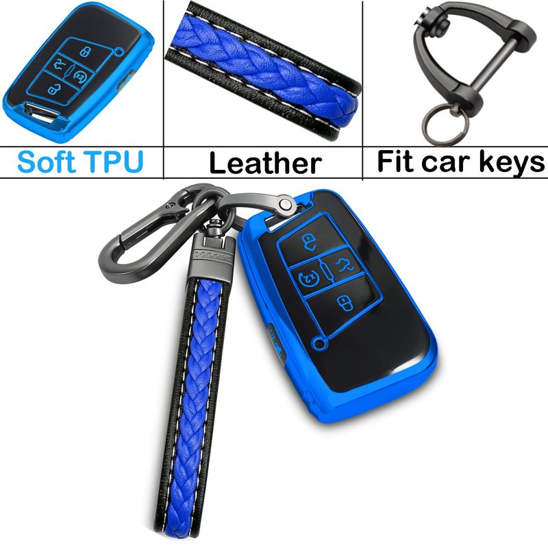 RODADOSHERRAMIENTAS PARA AUTOFunda para llavero Volkswagen con llavero de metal/cuero, TPU 5 botones, compatible con llave
