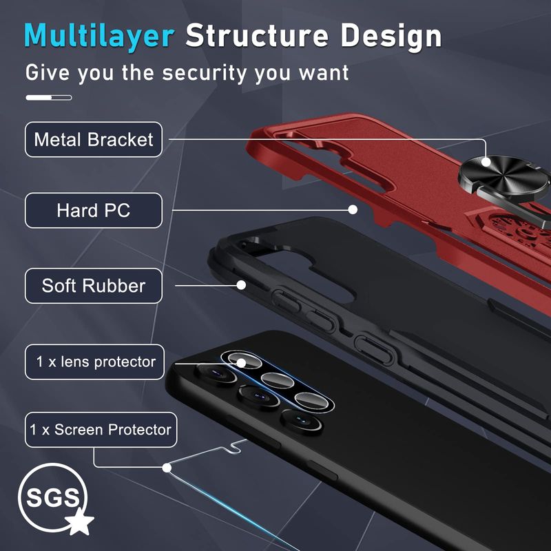 Soporte magnético integrado: el anillo de rotación de 360° de metal se puede sacar para una visualización manos libres en modo vertical u horizontal. Además, la hoja magnética de metal integrada se puede fijar directamente de forma estable al soporte magnético del teléfono del automóvil.