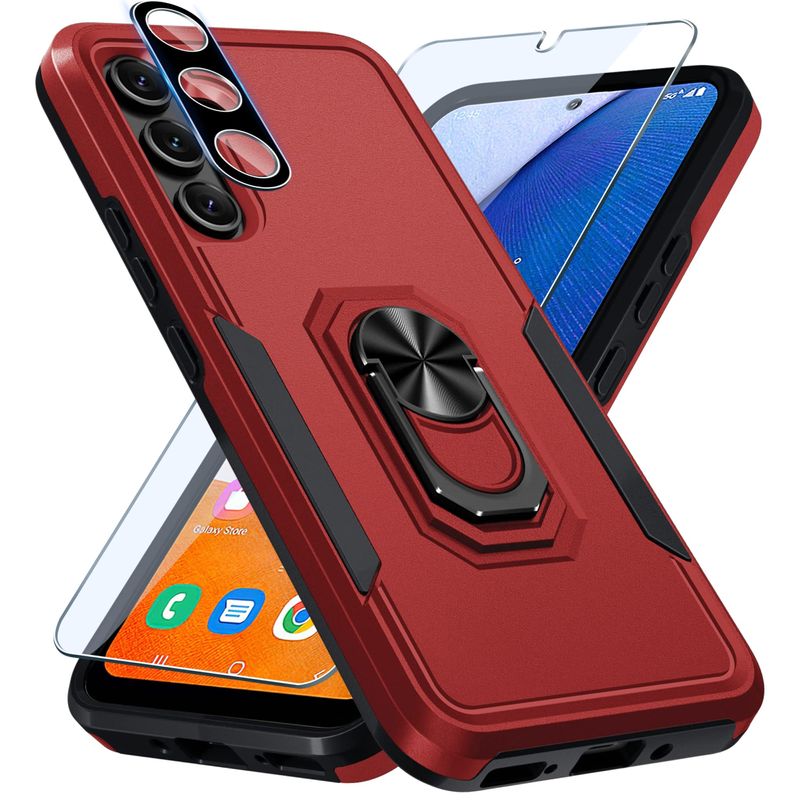 FUNDA PARA SAMSUNG GALAXY A54 5G CON 1 PROTECTOR DE PANTALLA + 1 FUNDA PARA LENTE DE CáMARA, RESISTENTE A PRUEBA DE GOLPES, FUNDA PROTECTORA DE CUERPO COMPLETO PARA TELéFONO, ANILLO DE DEDO INTEGRADO, SOPORTE ESTABLE CON SOPORTE, 2023 NEGRO MATE