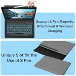 Protección inteligente con múltiples ángulos de visión y soporte para bolígrafo S para Galaxy Tab S9 Ultra: la funda de alta calidad para Galaxy Tab S9 Ultra está hecha de cuero vegano de composición exterior premium y forro antideslizante suave, una funda protectora para teclado le da a tu tableta una protección frontal y trasera de 360° contra arañazos accidentales. Y la funda Tab S9 Ultra tiene múltiples ángulos de visión y soporte para S Pen. Puedes elegir tu ángulo óptimo para usar tu pestaña y no te preocupes por que S Pen se pierda o se interponga.