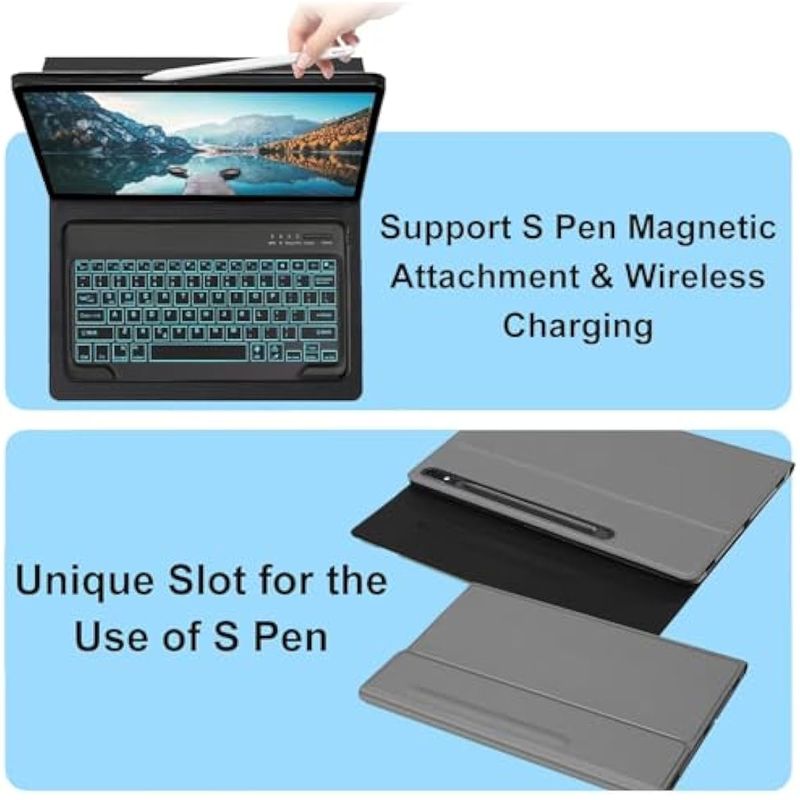 FUNDA PARA TECLADO GALAXY TAB S10 ULTRA/S9 ULTRA/S8 ULTRA, TECLADO INALáMBRICO DESMONTABLE CON RETROILUMINACIóN DE 7 COLORES, CUBIERTA MAGNéTICA CON SOPORTE PARA BOLíGRAFO S PARA SAMSUNG
