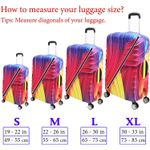 4 tamaños disponibles para adaptarse a casi cualquier equipaje. S: para equipaje de 19 a 22 pulgadas, M: para equipaje de 22 a 26 pulgadas, L: para equipaje de 26 a 30 pulgadas, XL: para equipaje de 30 a 33 pulgadas.