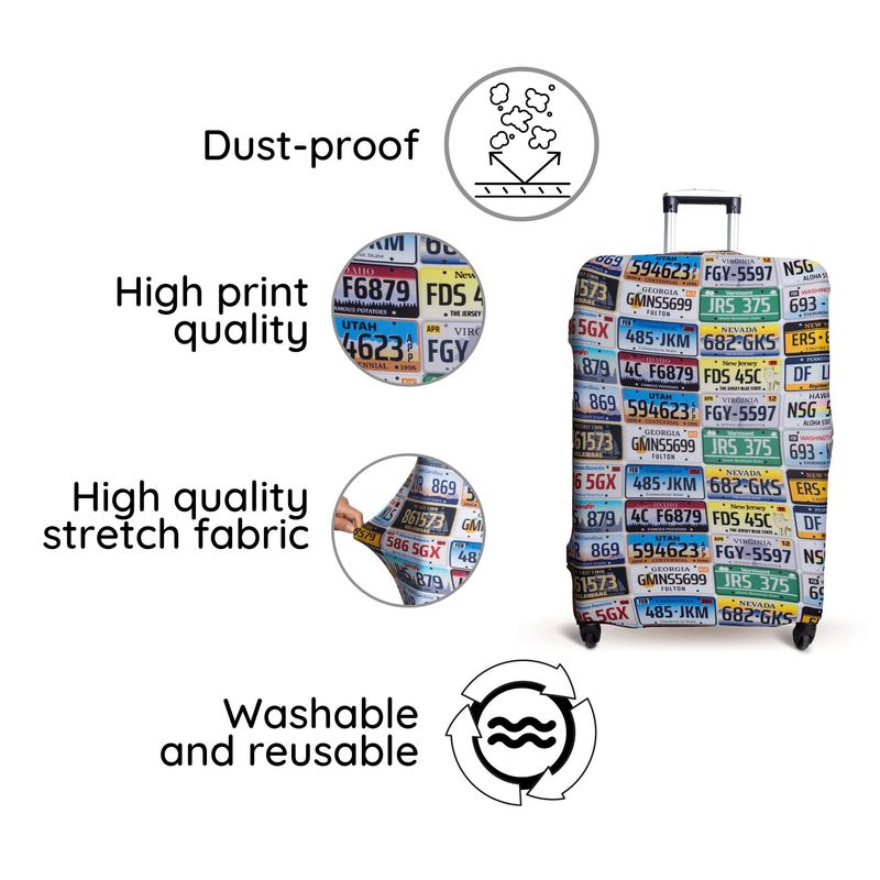 Funda para equipaje fabricada en material de alta calidad: 85 poliéster + 15 licra. Accesorios de equipaje lavables y duraderos.