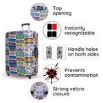 Contrariamente a los protectores de funda de maleta con cremalleras, nuestros protectores de funda de equipaje cuentan con cierres de velcro cierre de velcro. A diferencia de muchas otras fundas de equipaje aprobadas por la TSA, puedes tener una funda de equipaje personalizada reconocible al instante.