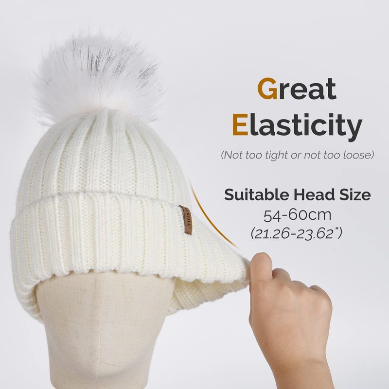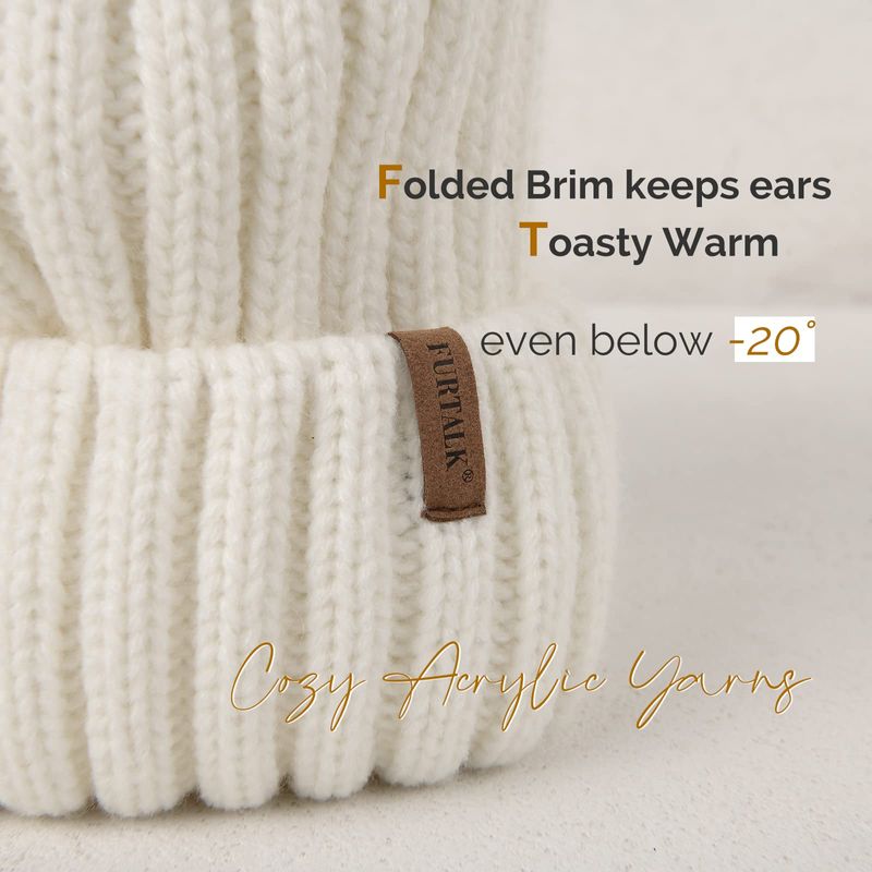 FURTALK - Gorro de punto para el invierno con pompón de piel sintética, cálido, para mujeres