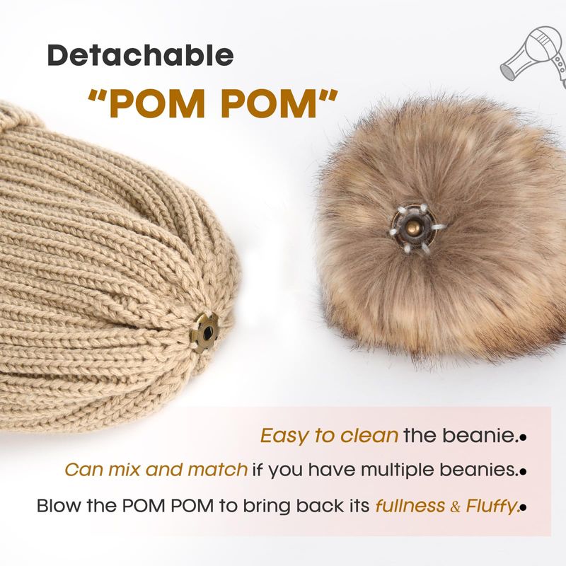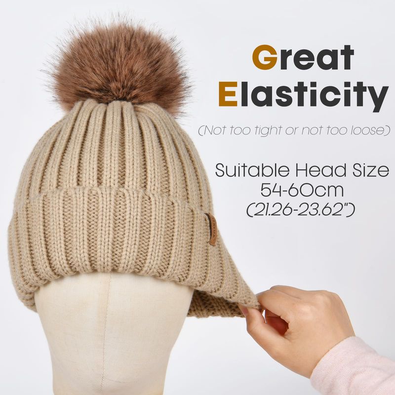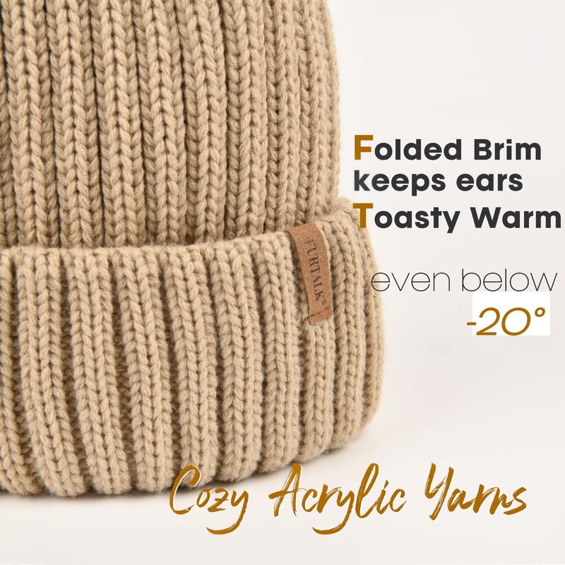 FURTALK - Gorro de punto para el invierno con pompón de piel sintética, cálido, para mujeres