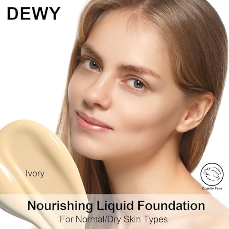 FV DEWY - MAQUILLAJE DE BASE LíQUIDA, CONTROL DE ACEITE, IMPERMEABLE, DE LARGA DURACIóN, PARA PIELES NORMALES Y SECAS, COBERTURA MEDIA LIGERA, VEGANO Y LIBRE DE CRUELDAD, MARFIL, 1.0 FL OZ