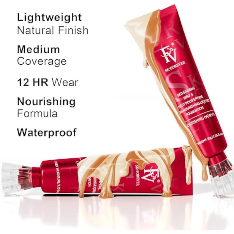 Acabado: porcelana para un acabado mate, y nutritivo para un aspecto natural; con imprimación, cuidado adecuado de la piel y con el polvo, la base de maquillaje FV puede durar de 10 a 12 horas.