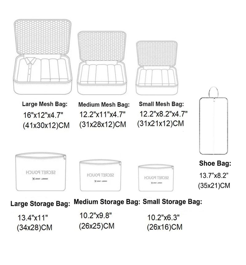 EQUIPAJEVALIJASFxkoolr Juego de 7 cubos de equipaje organizadores de equipaje de viaje con bolsa de zapatos para