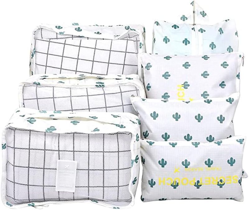 Fxkoolr Juego de 7 cubos de equipaje organizadores de equipaje de viaje con bolsa de zapatos para