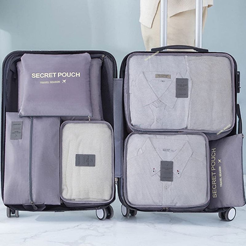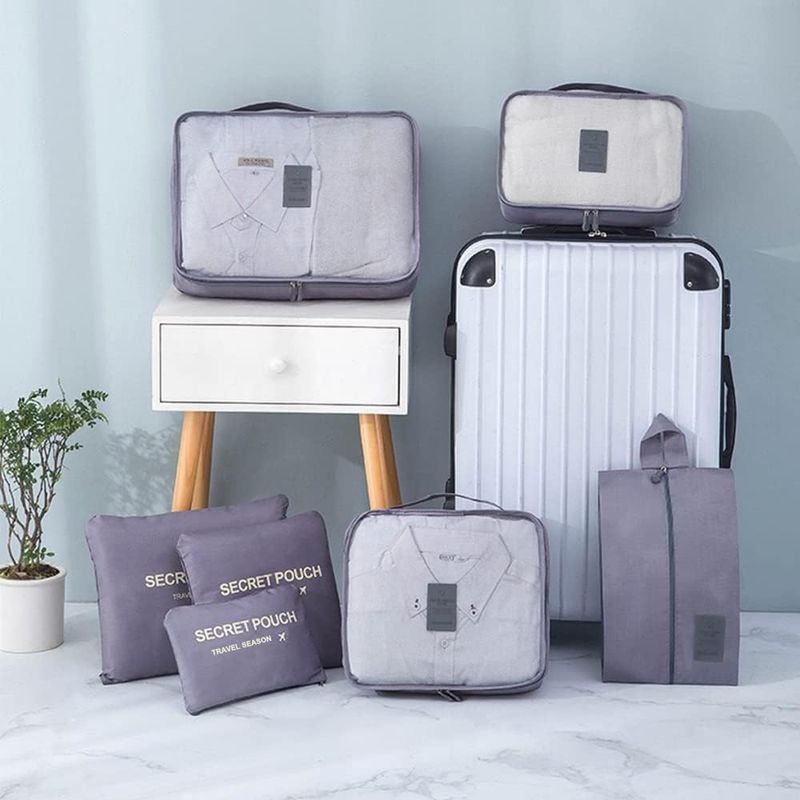 Fxkoolr Juego de 7 cubos de equipaje organizadores de equipaje de viaje con bolsa de zapatos para