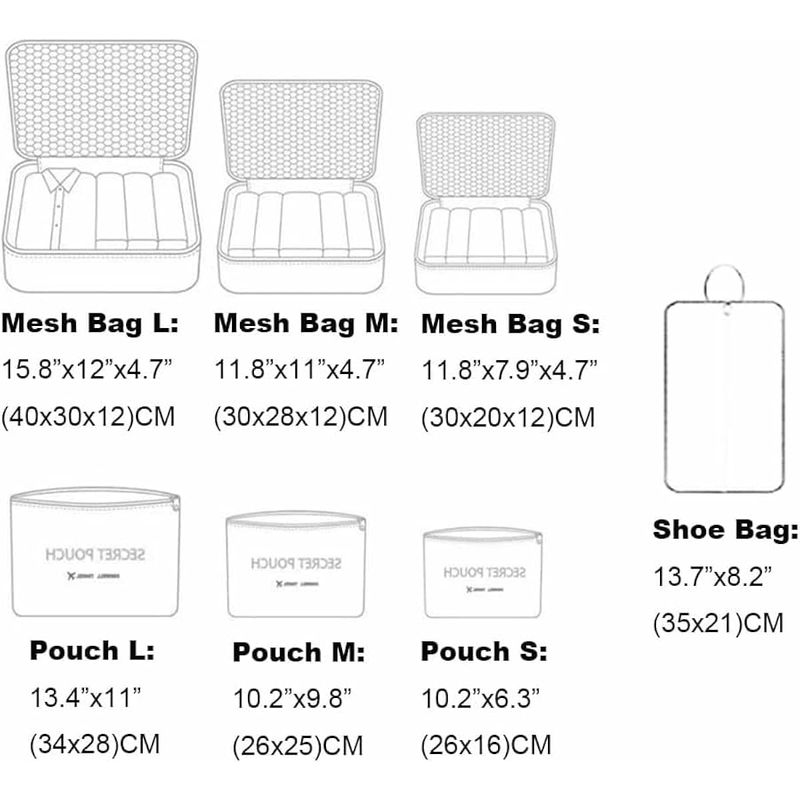 Fxkoolr Juego de 7 cubos de equipaje organizadores de equipaje de viaje con bolsa de zapatos para