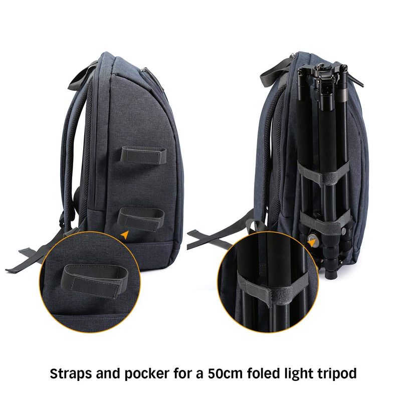 Correa de trípode: con correas de trípode externas en la parte lateral, realmente puedes utilizar esta mochila para una variedad de disparos y lugares diferentes