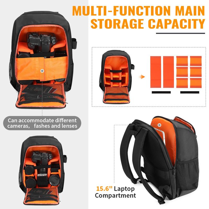 Compartimento para laptop: el espacio interior separado es capaz de contener portátiles de hasta 15.6 pulgadas y computadoras portátiles de forma segura, por lo que puedes editar tus imágenes mientras viajas
