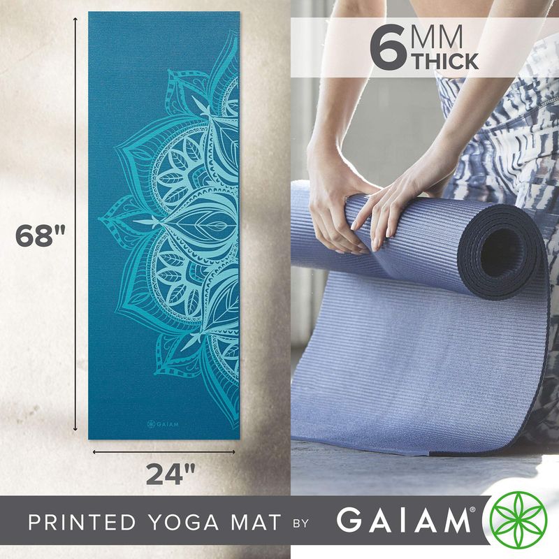 GAIAM TAPETE DE YOGA PRéMIUM, ESTAMPADO, EXTRA GRUESO Y ANTIDESLIZANTE, DE 15/64 PULGADAS, PARA TODO TIPO DE YOGA, DE PILATES Y DE EJERCICIOS EN EL SUELO (68 PULGADAS DE LARGO X 24 PULGADAS DE ANCHO X 15/64 PULGADAS DE GROSOR)