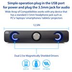 GamesterGear - Mini barra de sonido estéreo con cable USB compacto con alimentación USB, conector de