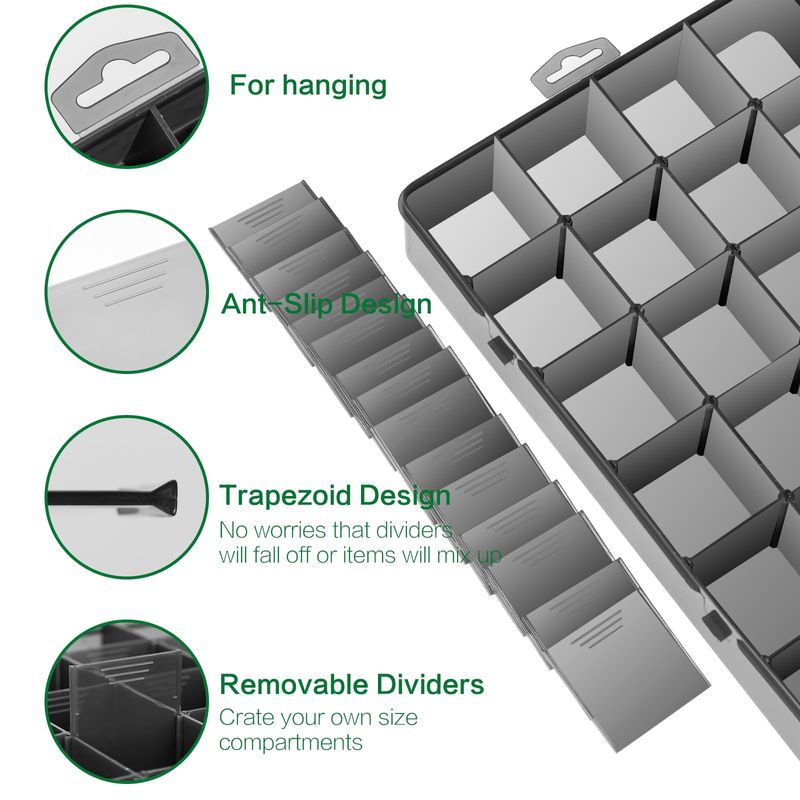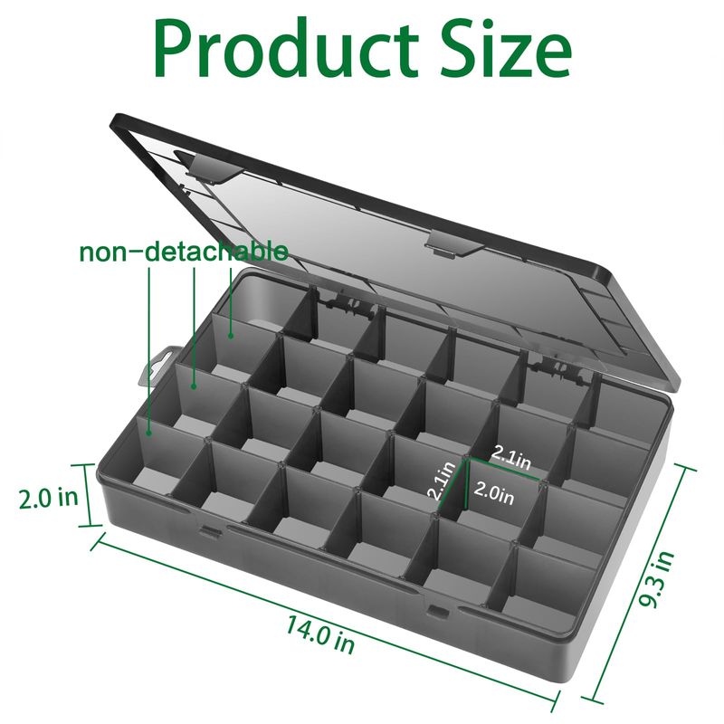 Gbivbe Caja organizadora grande de plástico con 24 rejillas, divisores ajustables, caja de