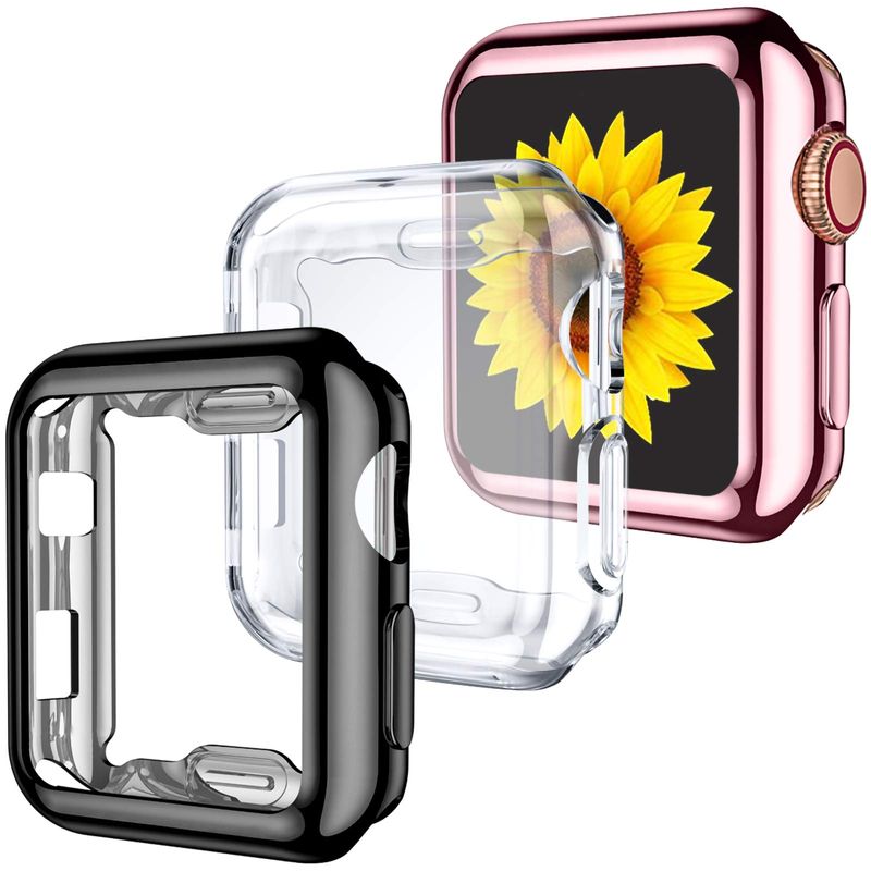 GEAK JUEGO DE 3 FUNDAS PARA APPLE WATCH DE 1.49 PULGADAS, CON SUAVE PROTECTOR DE PANTALLA DE ALTA SENSIBILIDAD HD Y TPU Y PROTECCIóN ANTICAíDAS DE 360º, PARA IWATCH SERIES 3/2/1, TRANSPARENTES
