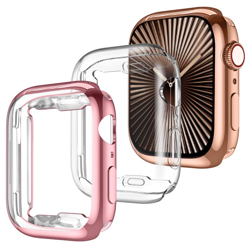 GEAK JUEGO DE 3 FUNDAS PARA APPLE WATCH DE 1.49 PULGADAS, CON SUAVE PROTECTOR DE PANTALLA DE ALTA SENSIBILIDAD HD Y TPU Y PROTECCIóN ANTICAíDAS DE 360º, PARA IWATCH SERIES 3/2/1, TRANSPARENTES