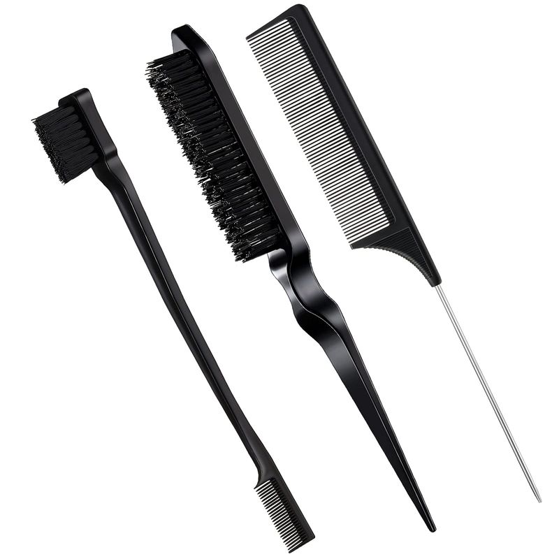 Geiserailie Juego de 3 cepillos de pelo Slick Back para mujer, cepillo de cerdas, control de bordes,