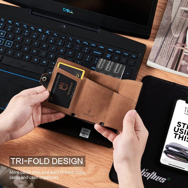 Gemonklee Billetera para hombre con tarjetero para AirTag, billetera inteligente de cuero para