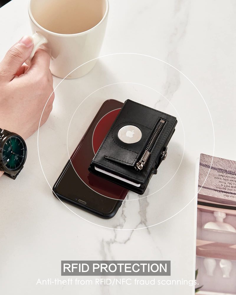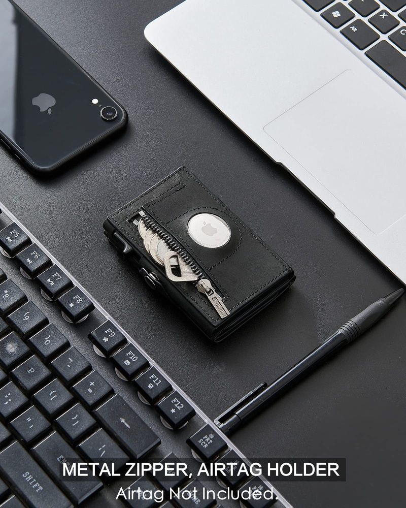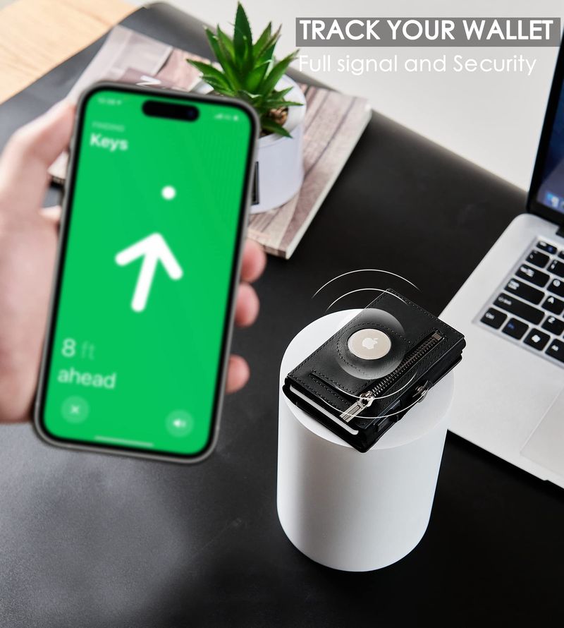 Gemonklee Billetera para hombre con tarjetero para AirTag, billetera inteligente de cuero para
