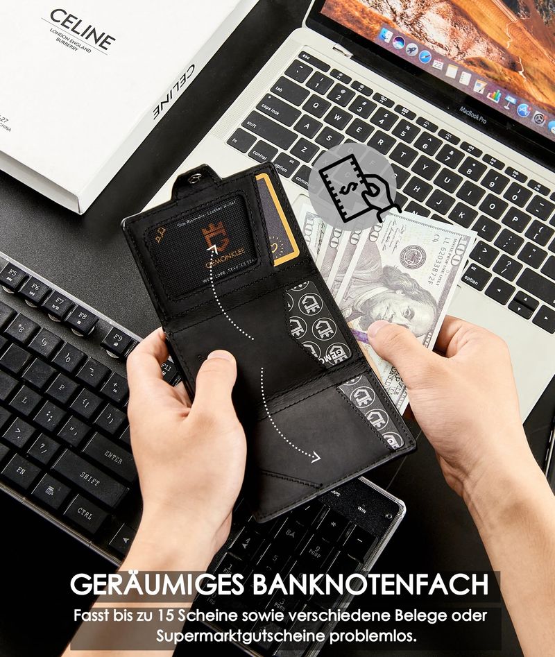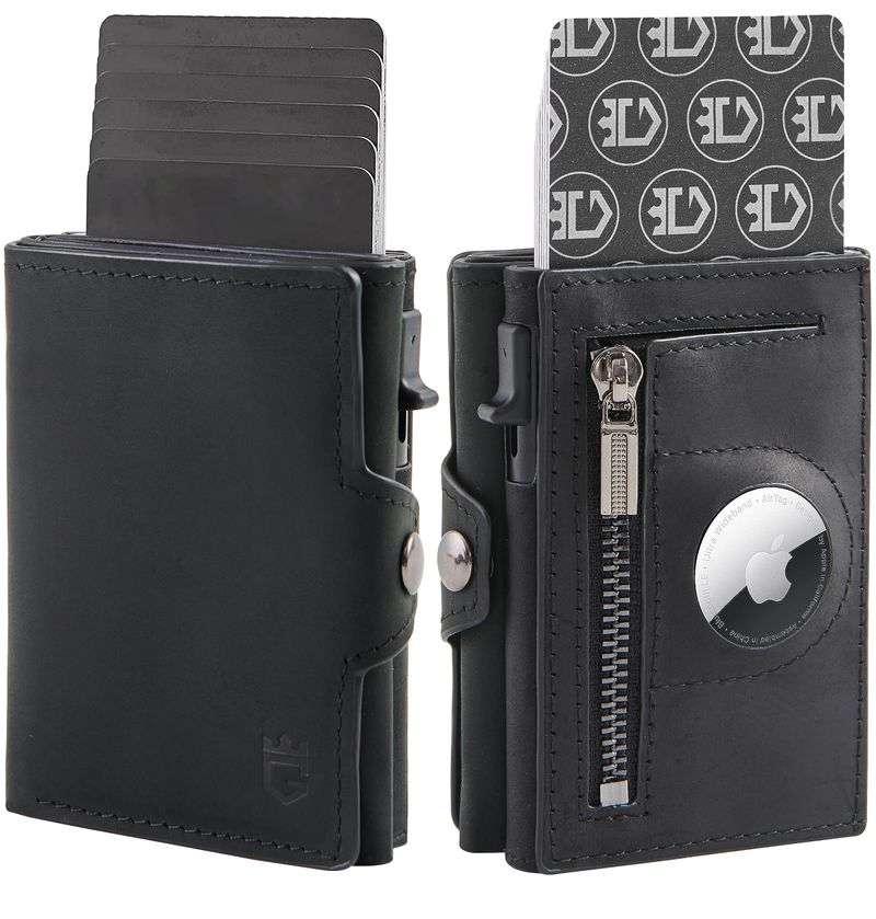 GEMONKLEE BILLETERA PARA HOMBRE CON TARJETERO PARA AIRTAG, BILLETERA INTELIGENTE DE CUERO PARA HOMBRES, BILLETERA DESPLEGABLE PARA AIRTAG, BLOQUEO RFID, DELGADA, FIBRA DE CARBONO, MINIMALISTA, CAPACIDAD PARA 10-14 TARJETAS, VENTANA DE IDENTIFICACIóN, RANURA PARA EFECTIVO, NEGRO 2.0, MINIMALISTA DELGADO
