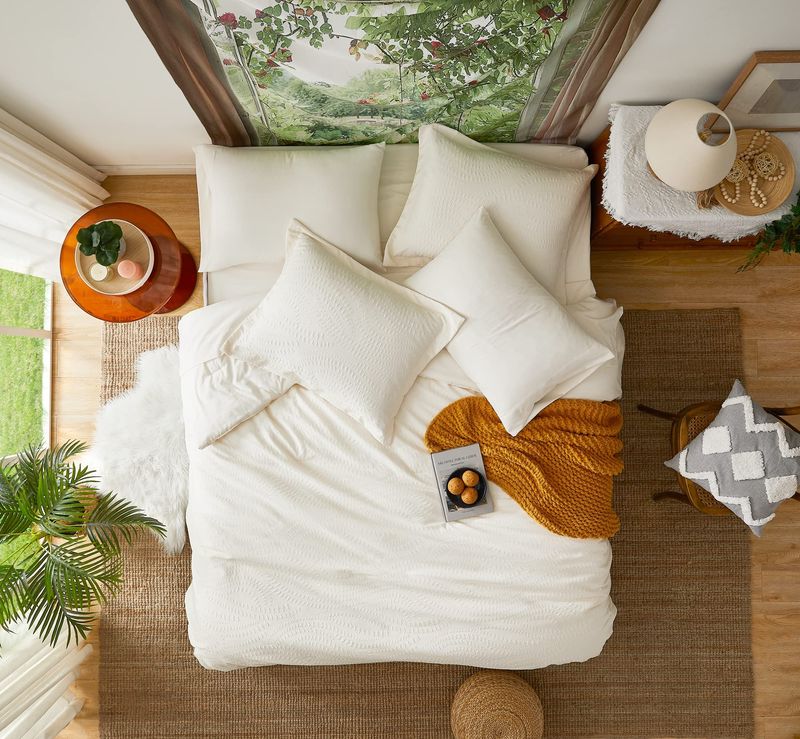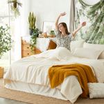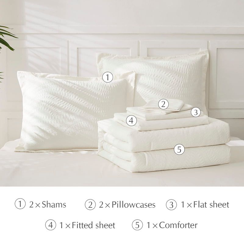 Geniospin - Juego de edredón King de 7 piezas, con textura beige para todas las estaciones; edredón,