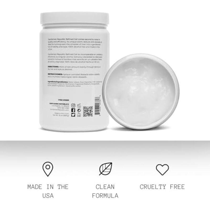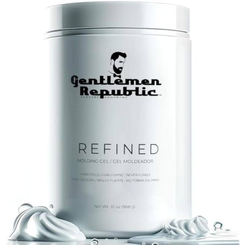 GENTLEMEN REPUBLIC GEL MOLDEADOR DE CABELLO REFINED RESISTENTE Y CON BRILLO PARA ACICALAMIENTO Y PEINADO, 32 ONZA, BLANCO