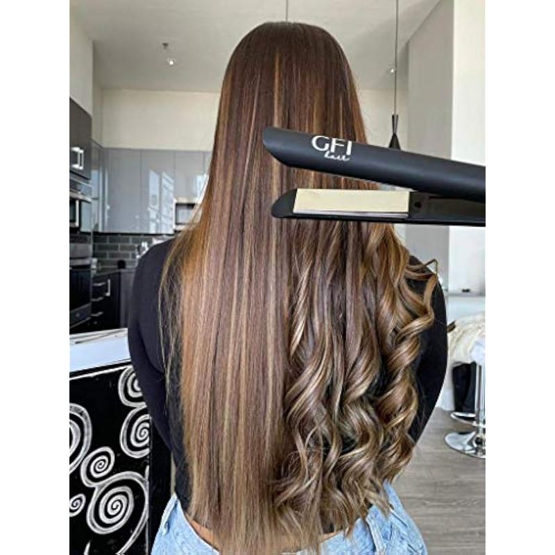 GFI Plancha para el cabello, elemento calefactor turbo, plancha plana de titanio, alisa, riza