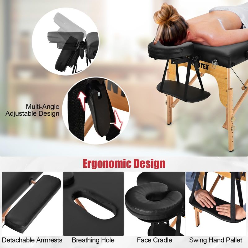 BELLEZA Y SALUDBELLEZA Y CUIDADO CORPORALGiantex Mesa de masaje plegable de 84 pulgadas, cama portátil de 3 secciones, cama de tatuaje con