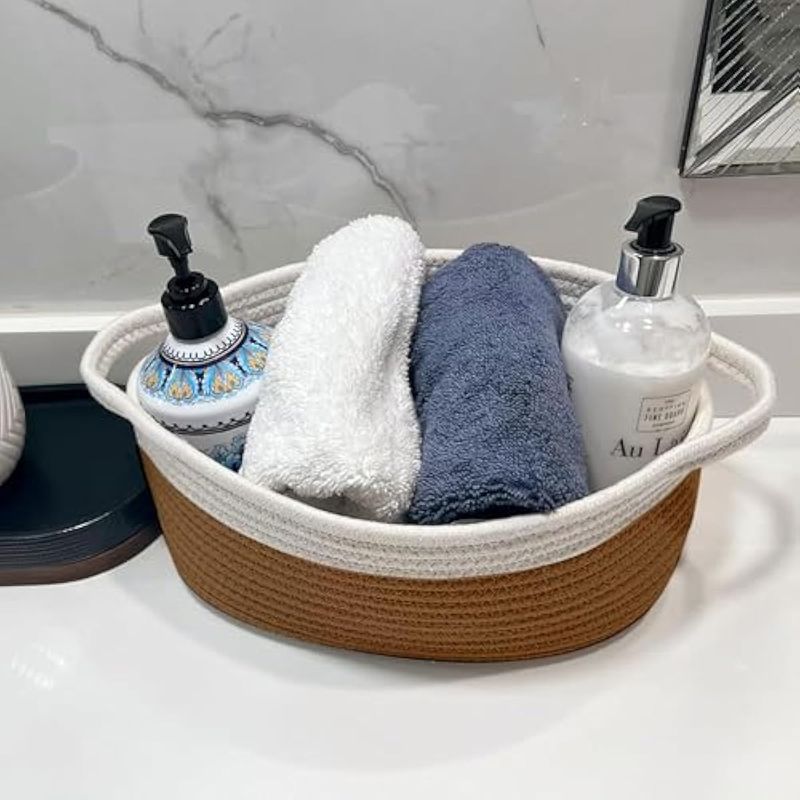 HOGARBAZARUTENSILIOS DE COCINAGiftExpress Cesta tejida de doble color blanco y marrón