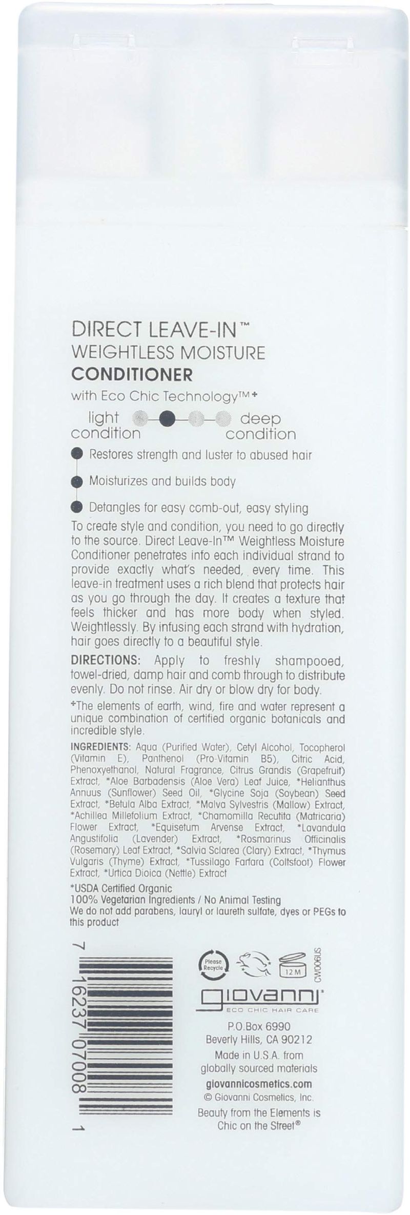Giovanni Acondicionador directo sin enjuague, 8.5 onzas - 6 por caja.