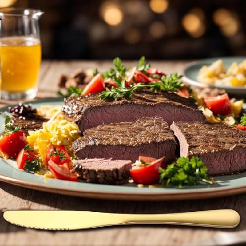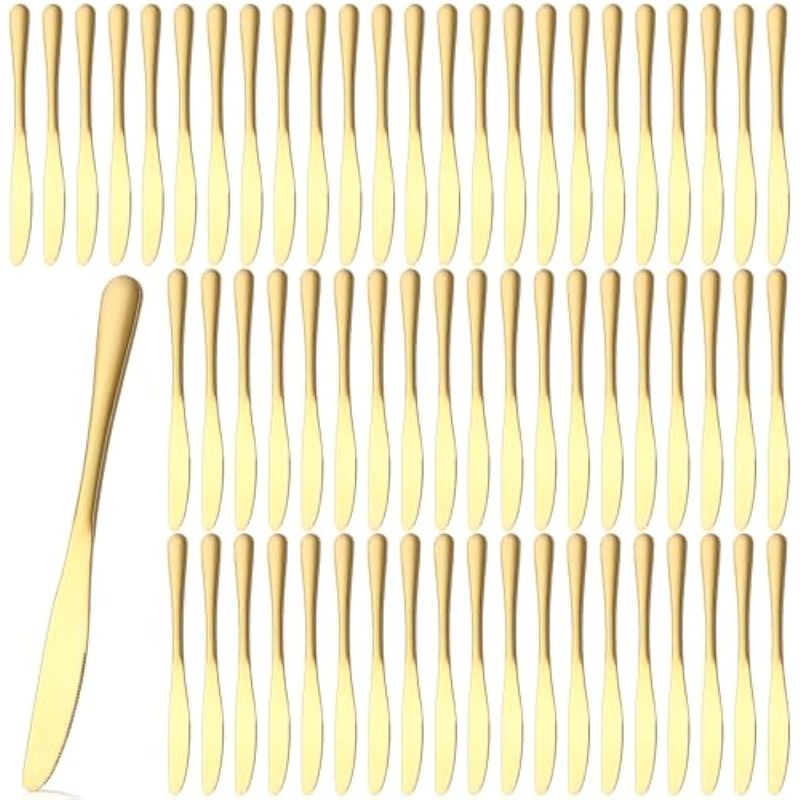 HOGARBAZARUTENSILIOS DE COCINAGisafai Juego de 64 cuchillos dorados de carne de 9 pulgadas, cuchillo dentado dorado de acero