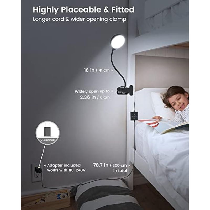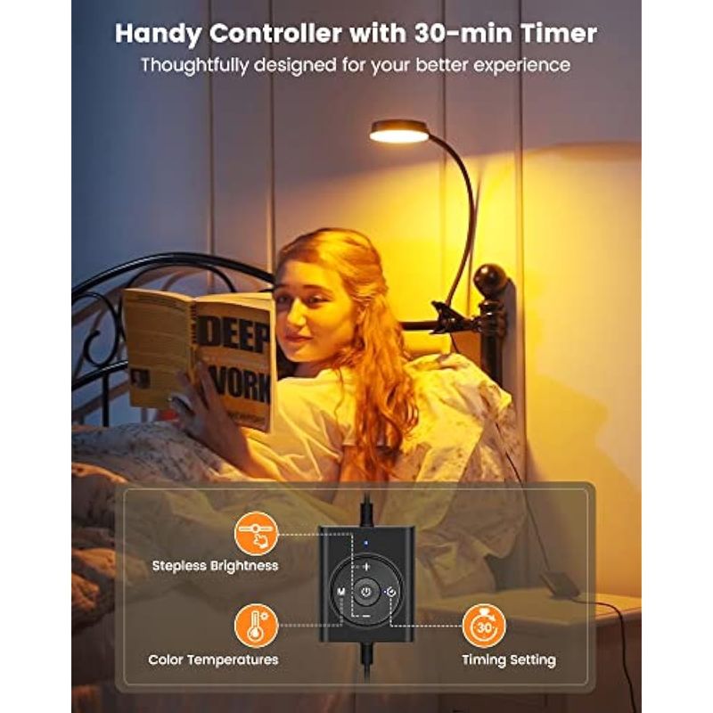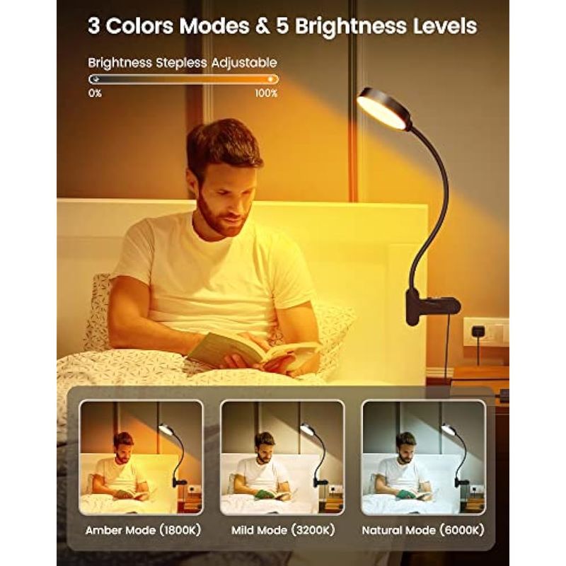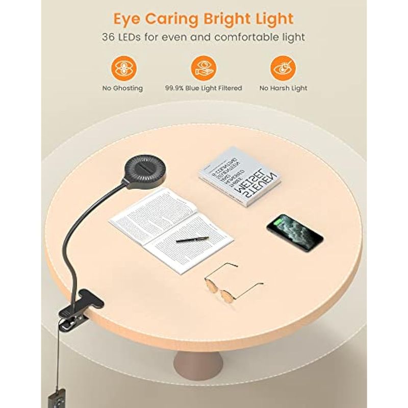 Glocusent 5W 36 LED Reading Clip on Light for Bed, Eye Caring Bed Lamp, 3 Colors & 5 Brightness