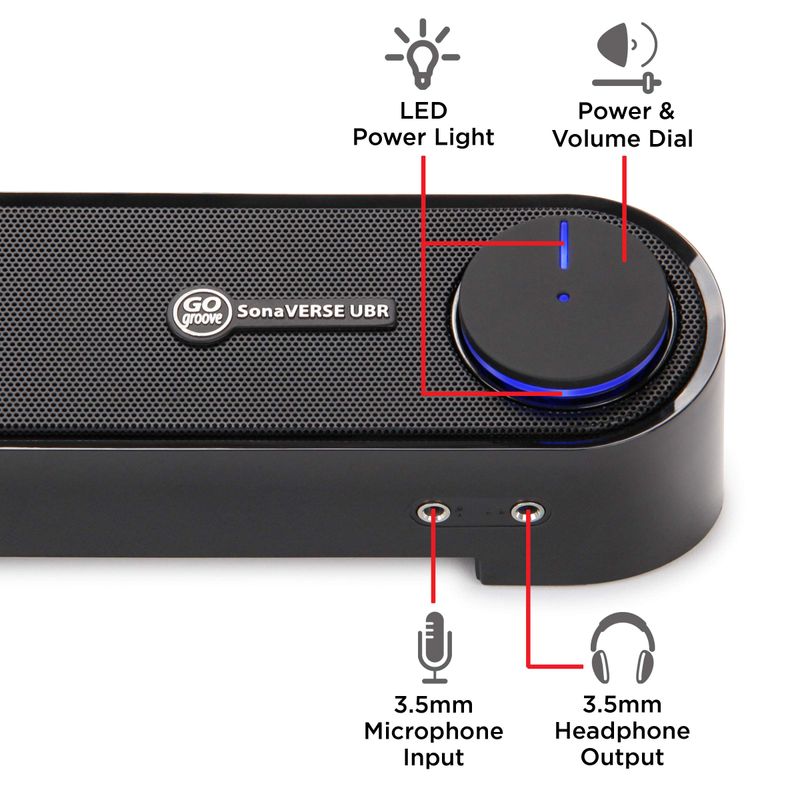 GOgroove Mini barra de sonido de altavoz de computadora, barra de sonido de PC alimentada por USB