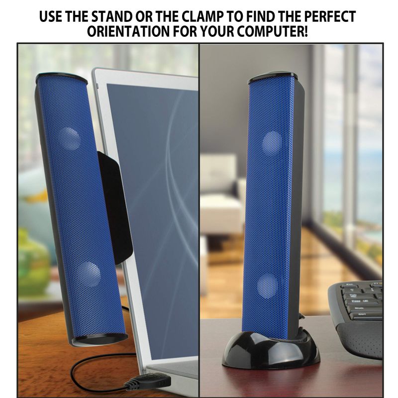 Incluye clip para computadora portátil y soporte de escritorio: monta el altavoz en la parte superior o lateral de tu monitor con la abrazadera incluida o utiliza la base de pie incluida para colocar la mesa en el escritorio
